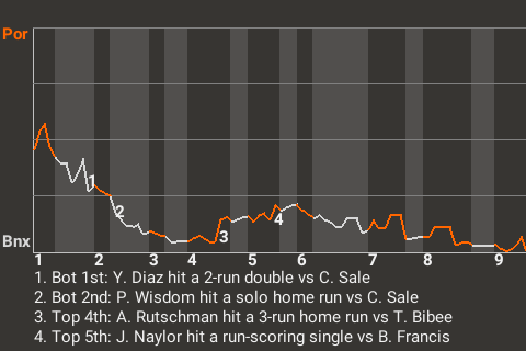Rain delay of 38 minutes in the 5th inning. CL David Robertson was injured while pitching.