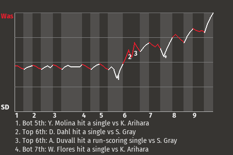 2 (7, 2nd Inning off J. Cousins, 1 on, 1 out; 8th Inning off W. Peralta, 0 on, 0 outs)