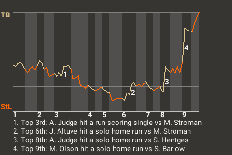 With Houston trailing 1-0 in the top of the fifth, De La Cruz hit a fastball from Jose Quintana for a 3-run home run. It was his 1st home run of the season and put the Titans ahead, 3-1.