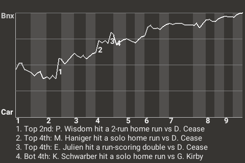 3 (5, 4th Inning off S. Woods Richardson, 0 on, 0 outs; 6th Inning off S. Woods Richardson, 0 on, 0 outs; 7th Inning off H. Crouse, 1 on, 2 outs)