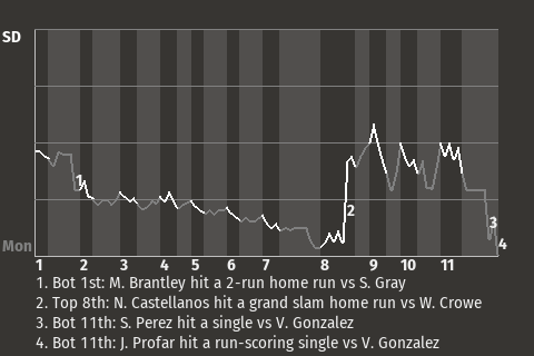 2 (8, 1st Inning off J. Ryan, 1 on, 1 out; 6th Inning off H. Gaddis, 0 on, 0 outs)