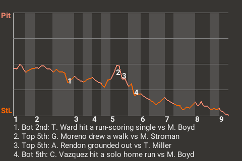 The Sluggers grabbed a win, 2-0, at Busch Stadium, overcoming a fine effort from Pittsburgh pitcher Matthew Boyd. Boyd went 6.1 innings and allowed 2 runs. St Louis, at 76-61, is 6 games up in the Federal League Central Division.