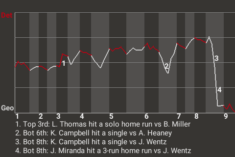 Georgia took a 3-1 lead on Jose Miranda's 14th home run of the season. The 3-run home run, which Miranda hit in the bottom of the eighth, left Detroit pitcher Joey Wentz visibly frustrated.