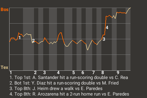 2 (33, 1st Inning off C. Rea, 1 on, 1 out; 8th Inning off E. Paredes, 0 on, 1 out)