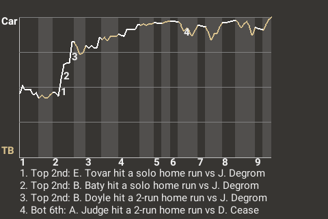 2 (9, 2nd Inning off J. Degrom, 1 on, 2 outs; 4th Inning off J. Degrom, 0 on, 2 outs)