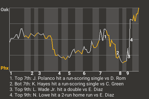 The Oakland Roses beat the Phoenix Firebirds, 6-5, at Chase Field. The Roses got a fine performance from first baseman Nathaniel Lowe, who went 2-3 with a home run and 2 walks. He drove in 2 runs and scored once. The win went to Jason Foley in relief, making him now 6-0. Edwin Diaz took the loss for Phoenix. Fernando Cruz converted his 35th save in 39 tries.