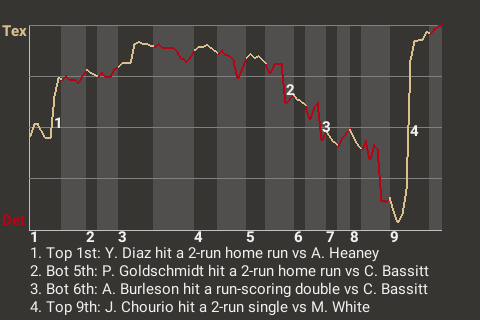 The Texas Vipers beat the Detroit Demons, 9-6, at Detroit Park. Jackson Chourio, in particular, was impressive. He was 2 for 4 with 2 singles and a walk, while scoring 3 times and driving in 2. After today's action, Texas sits at 63-79, while Detroit falls to 73-69.
