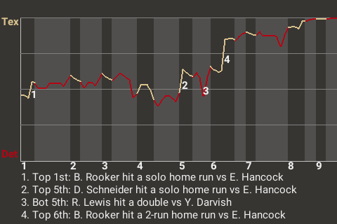 Texas took a 4-1 lead on Rooker's 27th home run of the season. The 2-run home run, which he hit off Emerson Hancock in the top of the sixth, propelled Texas to the win.
