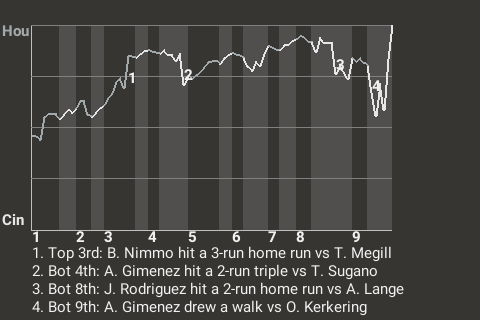 Houston left fielder Brandon Nimmo was a significant contributor in his team's 5-4 triumph over the Cincinnati Stars. He was 2-3 with 2 home runs and a walk. He drove in 4 runs and scored twice for the Titans. Tomoyuki Sugano was the winner. He's now 11-5. The loser was 30-year old right-handed pitcher Tylor Megill. The Union League Central Division-leading Titans are 86-61.