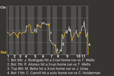 The decisive blow was delivered by Corbin Carroll in the bottom of the 11th when he hit a solo home run off 29-year old right-handed pitcher Colin Holderman to win the game for Seattle. The home crowd went nuts.