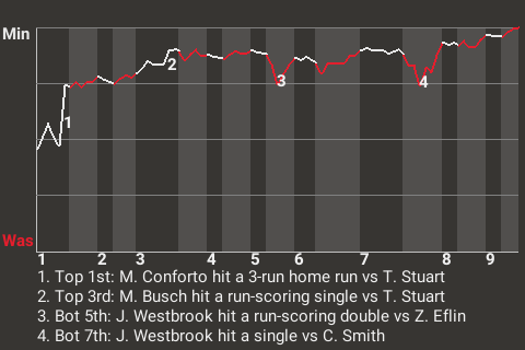 The Minnesota Millers cut down the Washington Hitmen by the score of 5-2, with the largest share of the credit going to left fielder Michael Conforto. Conforto was 2 for 4 with a home run. He drove in 4 runs and scored once for the Millers. Zach Eflin, the winner, improved to 9-10. He held Washington to 2 runs on 4 hits over 5.1 innings, while racking up 6 strikeouts. The Millers, at 84-65, have now won 4 straight.