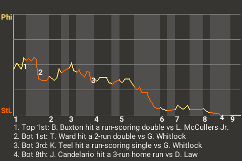 Jeimer Candelario was a major contributor to the 9-3 St Louis win over Philadelphia. The Sluggers third baseman went 1 for 3 with a home run and 2 walks, while scoring 3 times and driving in 3. St Louis goes to 83-69. The win puts them 6 games up in their division.
