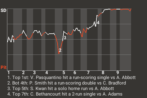 Who knows how it might've ended, had it not been for Christian Bethancourt? The San Diego catcher had a 2-run single in the top of the seventh inning to put the Snakeyes on top, 4-1. For the game, Bethancourt had 2 doubles and 1 single in 5 at-bats.