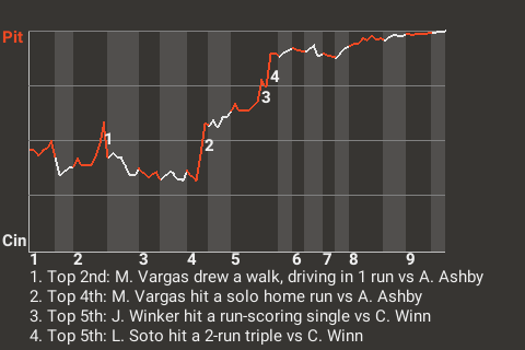 Miguel Vargas helped out the Pittsburgh cause in the top of the second inning with a run-scoring walk. For the game, the first baseman was 1-4 with a home run and a walk, while adding 2 RBI and scoring once.