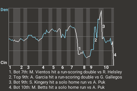 Cincinnati got a knockout punch from Marcus Betts. The pinch hitter hammered a solo home run in the bottom of the tenth inning to win the game. It might've been his only hit, but it decided the outcome.