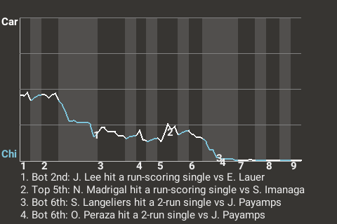 The outcome was still in doubt with two out in the top of the fifth inning, but Imanaga was able to pitch out of a jam. With runners on 1st and 3rd and Carolina trailing 3-1, Imanaga retired Juan Soto, who grounded out.