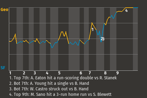 a - D. Vogelbach pinch hit for C. Leblanc in the 8th