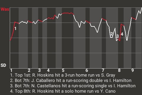 2 (40, 1st Inning off S. Gray, 2 on, 0 outs; 8th Inning off Y. Cano, 0 on, 1 out)