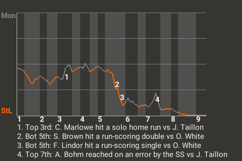 The Sluggers got a big at-bat from left fielder Seth Brown. For the game, Brown went 1-4 with a double. In the bottom of the fifth, with a runner on 2nd, he stroked a run-scoring double. His 23rd double of the season gave St Louis a 2-1 lead.