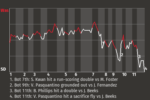 b - N. Lopez pinch hit for J. Rojas in the 9th