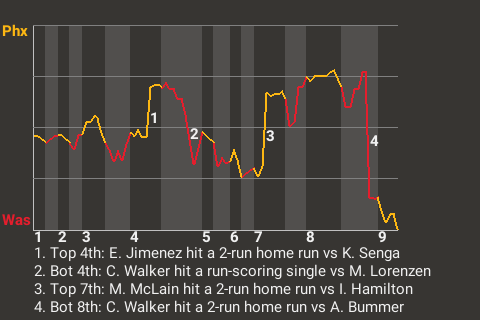 Walker had a timely hit for Washington in the bottom of the eighth. With Washington trailing 4-3, he turned a first pitch sinker into a 2-run home run. It was his 15th home run of the season, making it 5-4, Washington.