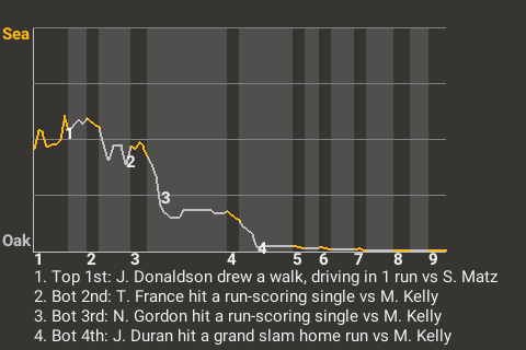 With Oakland leading 4-1 in the bottom of the fourth, Duran hit a curveball from Merrill Kelly for a grand slam home run. It was his 30th home run of the season and put the Roses ahead, 8-1.