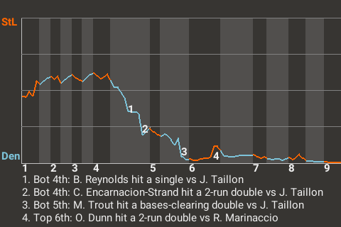 3 (39, 1st Inning off B. Williamson, 0 on, 1 out; 7th Inning off R. Marinaccio, 0 on, 2 outs; 9th Inning off A. Kittredge, 0 on, 2 outs)
