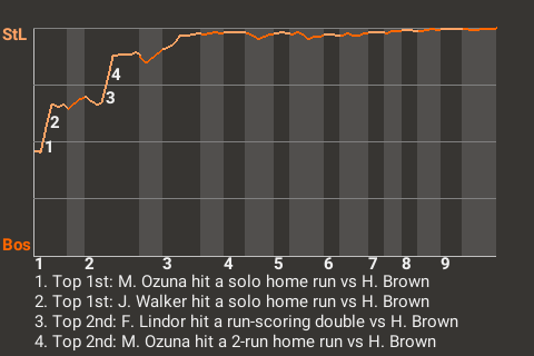 With St Louis leading 3-0 in the top of the second, Ozuna hit a curveball from Hunter Brown for a 2-run home run. It was his 25th home run of the season and put the Sluggers ahead, 5-0.