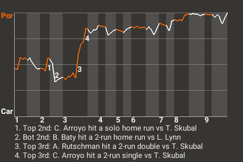 a - J. Rojas substituted for R. Arozarena in the 9th